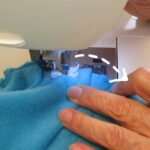① 針下の布端が直線ではなく、円の弧を描きながら縫い進んでください。