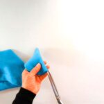 2⃣ 折山から1cmくらい下を、2,3針縫ってとめる。